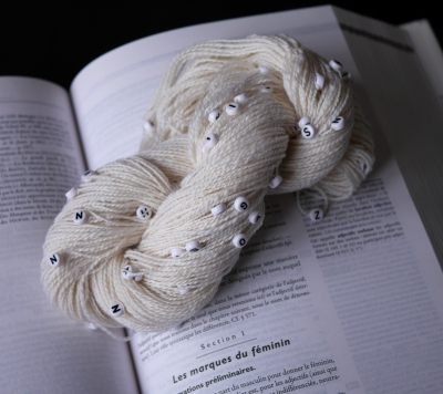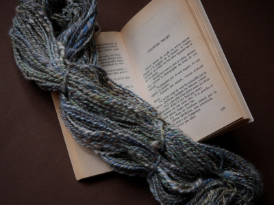 Écheveau mérinos et Nylon brillant cardé puis filé au rouet